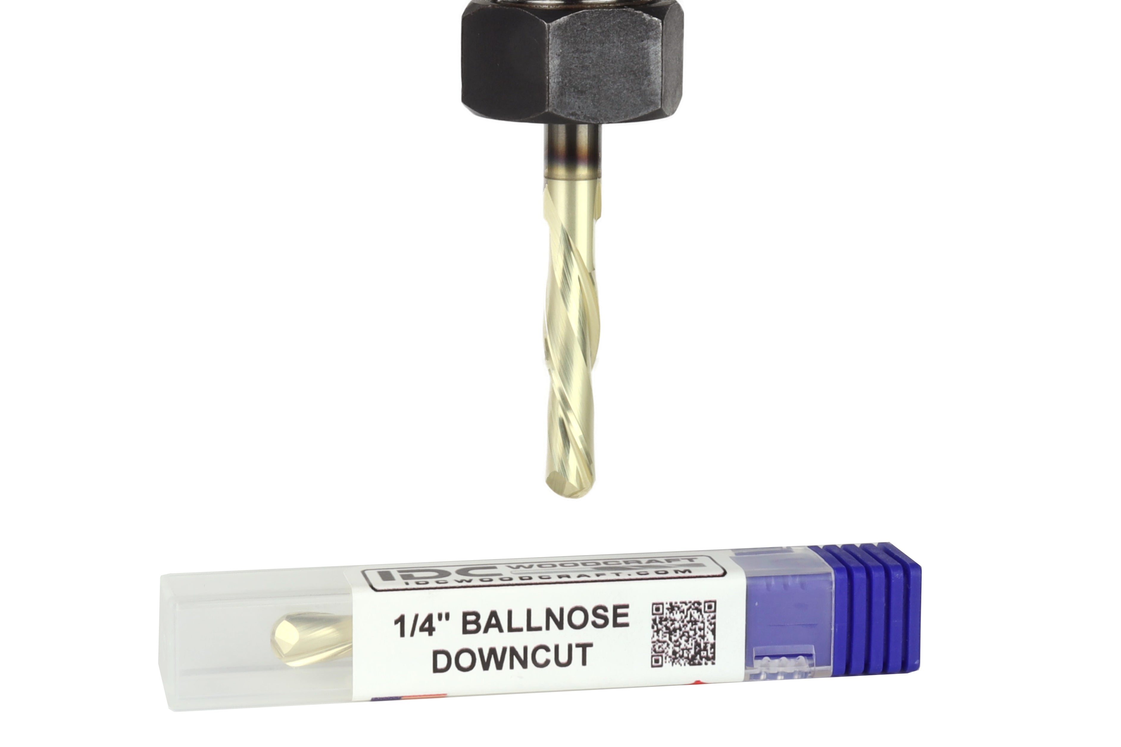Meet the No Tear-Out 1/4” Down-Cut Ball Nose Endmill—your go-to CNC router bit for accent details, marble mazes, and even larger 3D carvings.