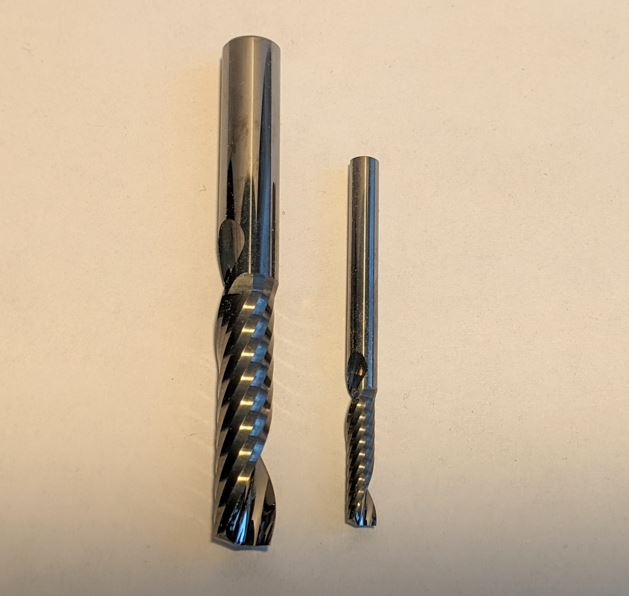 Both acrylic and aluminum require a high-spiral bit that minimizes contact with the plastic to prevent melting, which 'galls' the material to the bit, making it ineffective. This also virtually eliminates the other enemy of cutting plastic...melting it and causing it to bind to the cut surface.