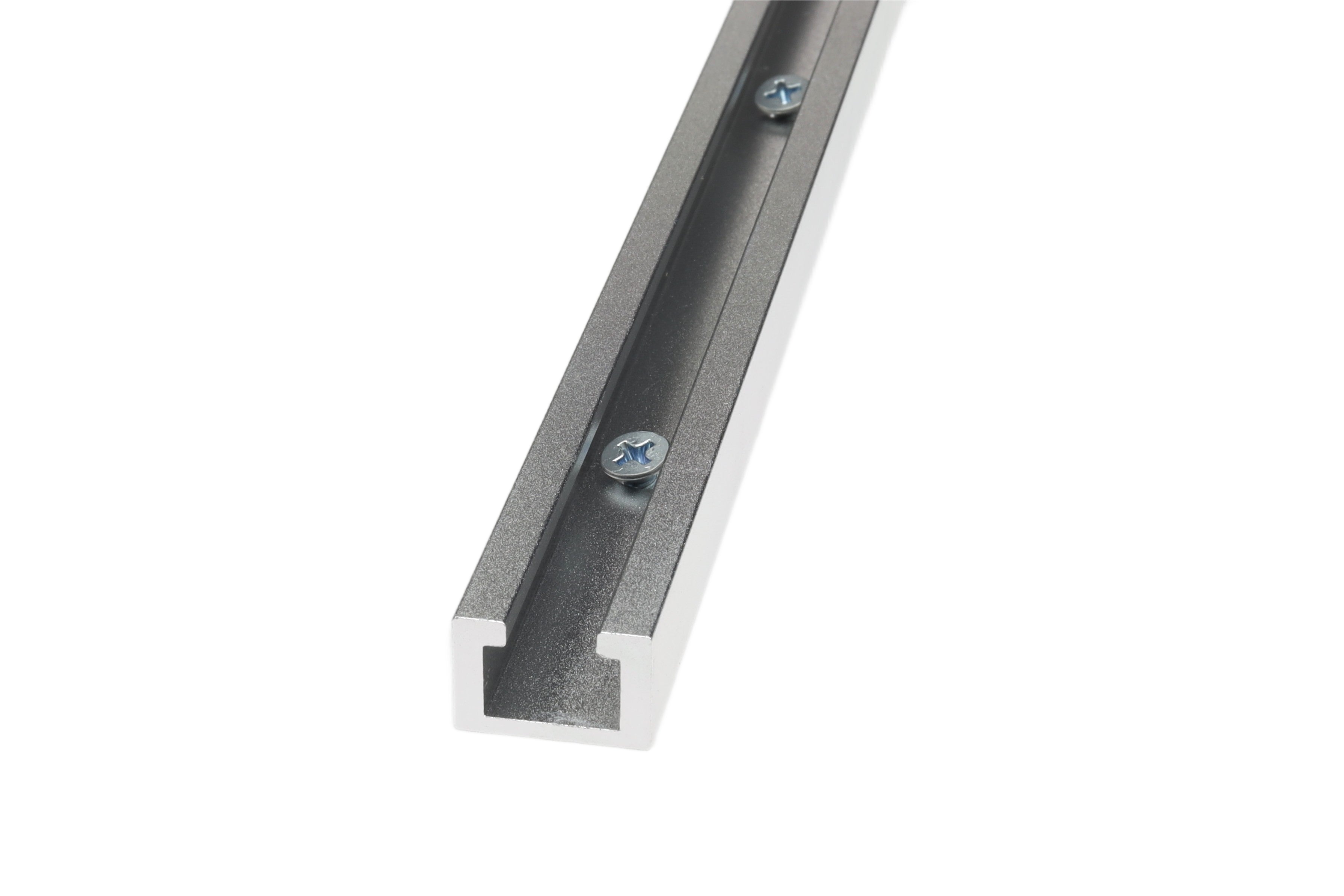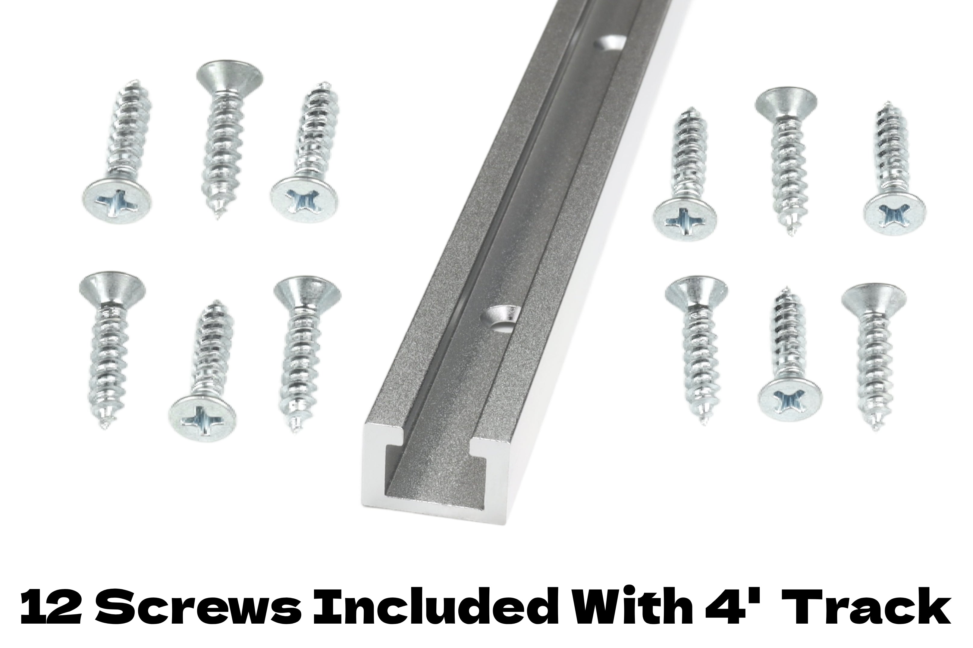 Designed exclusively by IDC Woodcraft, our T-track is made from high-quality extruded aluminum, offering exceptional durability and strength. Track mounting is streamlined with pre-drilled, countersunk holes on a 4-inch spread, ensuring the included #8 x 3/4" flat head screws seat flush for a secure installation while maintaining full clearance for bolts.