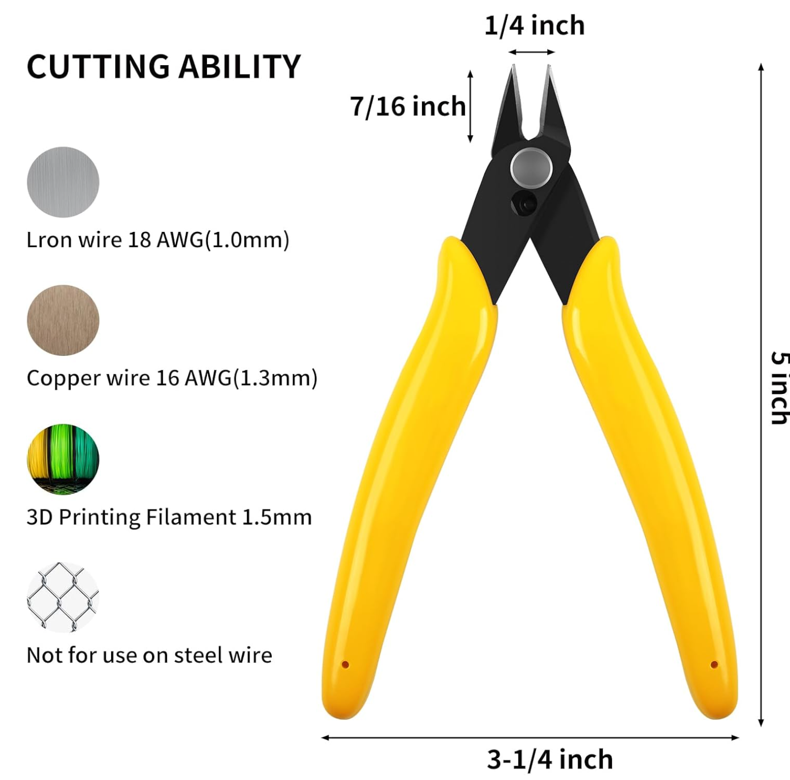 Economical diagonal cutter - 1pcs 170 Shear Cutter, yellow, 5 inches, made from alloy steel, 10mm long jaws can be cut up to 18 AWG copper wire.